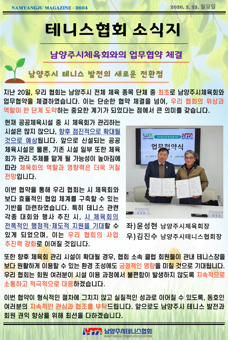 Ä¿¹Â´ÏƼ > Å״Ͻº´º½º > [³²¾çÁÖ½ÃüÀ°È¸¿ÍÀÇ ¾÷¹«Çù¾à ü°á]