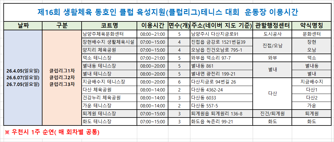 °øÁö 2026 ³²¾çÁÖ½ÃÀå¹è Ŭ·´¸®±×Àü ǻ󽺺δÜüÀü ´ëÁøÇ¥ ¹× ÄÚÆ®À塦 ³²¾çÁÖ 15:07 3